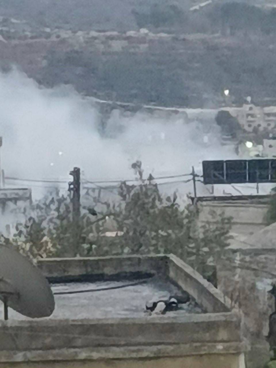 16:12: Occupation forces fire flashbangs and tear gas during the storming of the town of Beita south of Nablus.