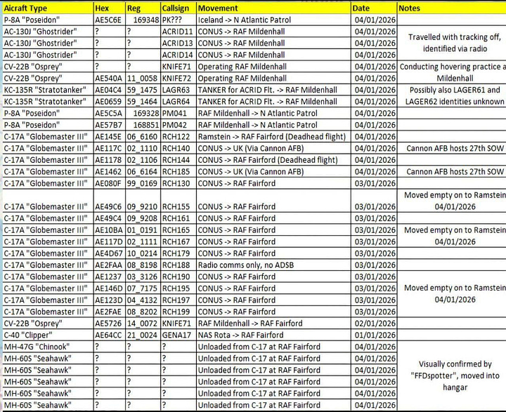 Over the past 24 hours, there has been a clear and measurable increase in U.S. military mobility activity tied to the Middle East. Open-source flight tracking confirms a surge of U.S. Air Mobility Command C-17 aircraft transiting through the United Kingdom, particularly RAF Fairford and RAF Mildenhall, bases historically used for forward staging into CENTCOM’s area of responsibility. The event that warrented the inclusion of this news in this update, however, was the high altitude surveillance around Iran by an American Triton drone.