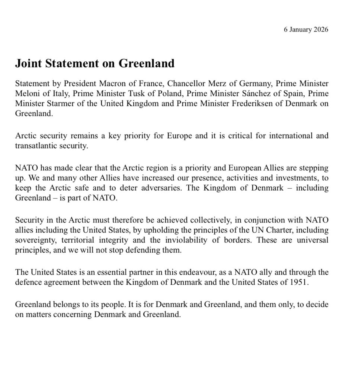 European leaders came together to issue a joint statement on the USA’s continued threats to annex Greenland, in fact it was less a threat and more of a warning. European leader almost never publicly correct Washington, even on matters of genocide or international law. However, Greenland seems to be the one area where they are standing their ground in unison, stating plainly that Greenland is not a strategic asset to be claimed, and not subject to the desires of an expansionist power. That this had to be said at all tells you how far the relationship between the NATO allies has fallen under the USA’s authoritarian leader.