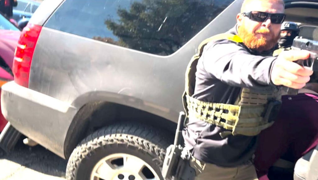 Cuni’s conduct has escalated notably since his identification in October. In Minnesota, he was involved in an incident in which a pregnant woman was assaulted during an enforcement action, as Cuni’s collegue drags her along the ground, as Cuni himself points his taser and gun aimlessly at the surrounding crowd. The presence of a senior agent during such an assault, and the absence of any corrective or de-escalatory response, further underscores his role in normalising violence rather than preventing it.