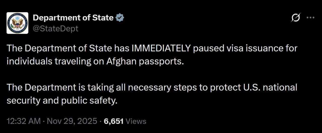 The administration has used this shooting to describe entire populations, enacting collective punsihment against Afghans, against asylum seekers, and against all visa holders from 19 nations. The suspect was Afghan, an asylum seeker and held a visa, so the guilt must be shared to each group, that is the logic at play right now. A sweeping political attack on immigrants, asylum seekers and anyone tied to the Global South. It was a policy they wanted long before the attack, even going back to the first Trump term.