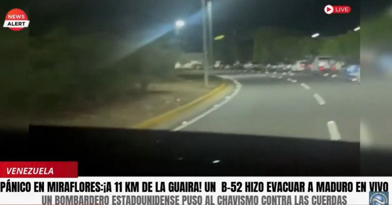 CBS confirms that Donald Trump personally ordered the strikes. No formal legal justification is offered. Sky News Arabia claims the home of Defense Minister Vladimir Padrino López was bombed. Footage shows activity around the presidential palace in Miraflores, with vehicles fleeing the area.