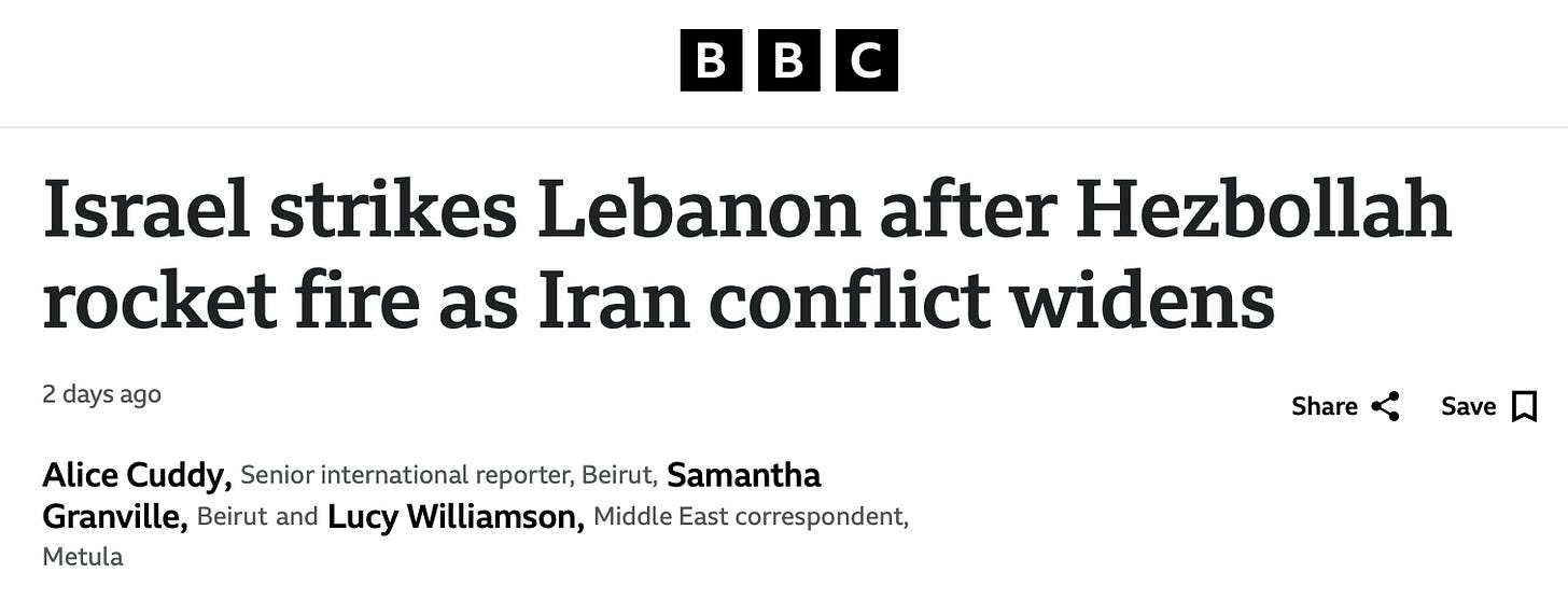 You’re being lied to because framing determines policy and opinion. When the story begins with Hezbollah’s attack, Israel’s response, airstrikes on Beirut that killed 52 people in a single night, evacuation orders for entire regions, troops crossing the border, looks like self-defence and not an invasion that was likely planned before March 2. When the story includes the preceding 15 months, it looks like the continuation of a military campaign that Israel never stopped taking part in.